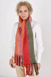 Red Green And Pink Wrap Scarf hand dyed. 70% acrylic, 30% wool.