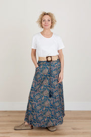Silky Teal And Gold Patterned Skirt Bias cut skirt in green and gold with tassel detail and pockets. 100% Viscose