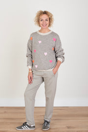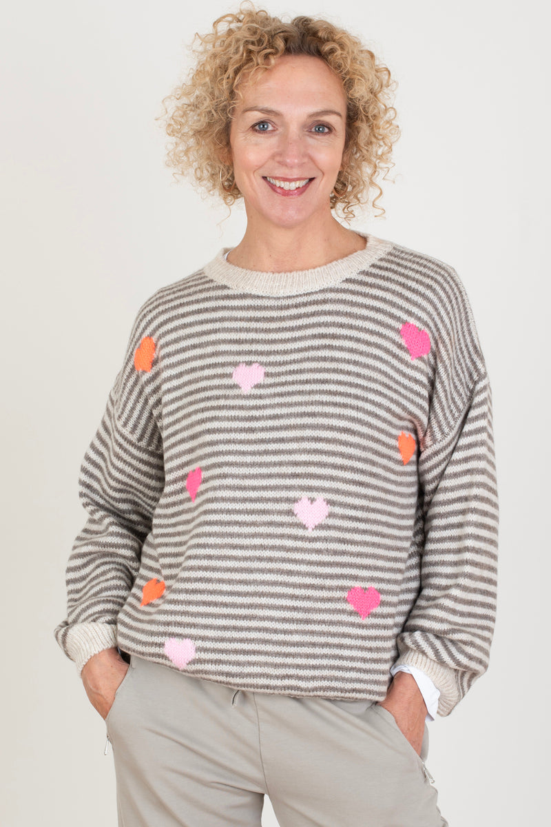 Striped Heart Pattern Jumper, 80% Acrylic, 20% Polyamide.